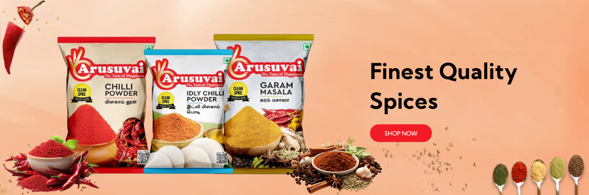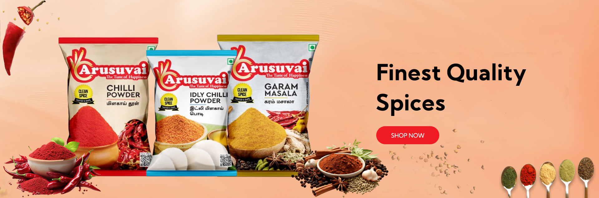 Arusuvai brings you premium masalas that celebrate Tamil Nadu’s rich culinary traditions, ensuring authentic taste, freshness, and aroma in every meal. Experience the true essence of flavor with Arusuvai.